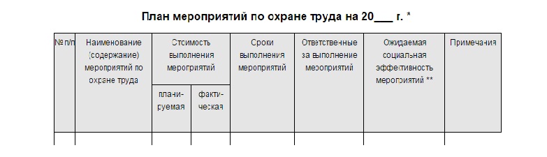 Примерная форма плана мероприятий по охране труда приведена ниже.